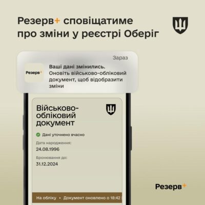 Резерв+ тепер сповіщатиме про зміни у реєстрі Оберіг