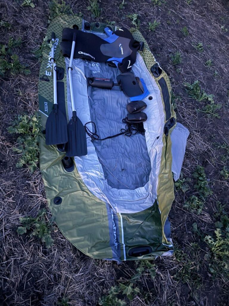 Троє жителів Запорізької області, віком від 18 до 48 років, спланували свій маршрут заздалегідь і з особливою прискіпливістю: чоловіки придбали гідрокостюми, гумовий човен та весла.