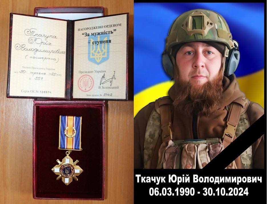 - Юрія Ткачука, командира бойової машини, який загинув 30 жовтня 2024 року поблизу Озерянівки, проявивши стійкість і відвагу під час виконання бойового завдання. За Указом Президента України від 30 травня 2025 року №356 його посмертно нагороджено орденом «За мужність» III ступеня.
