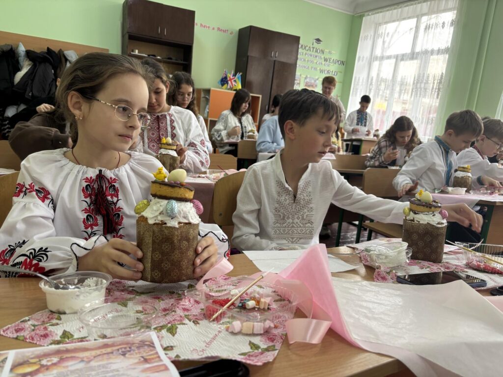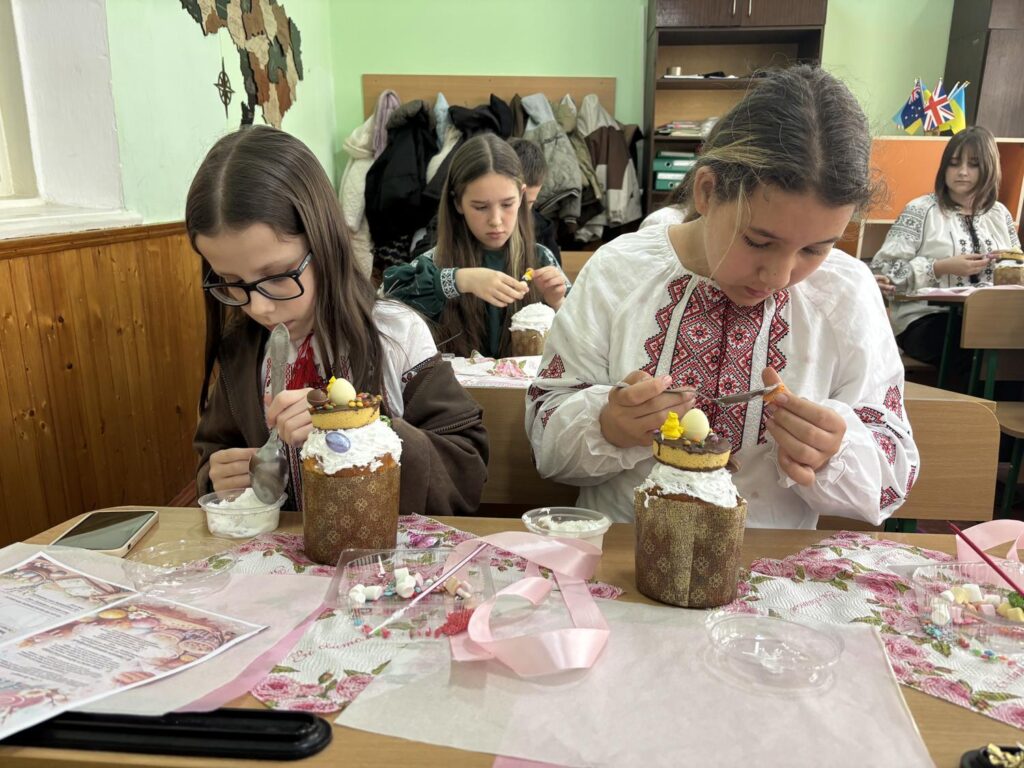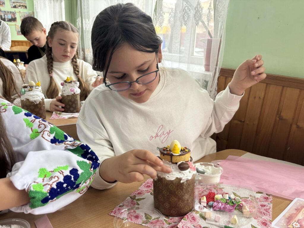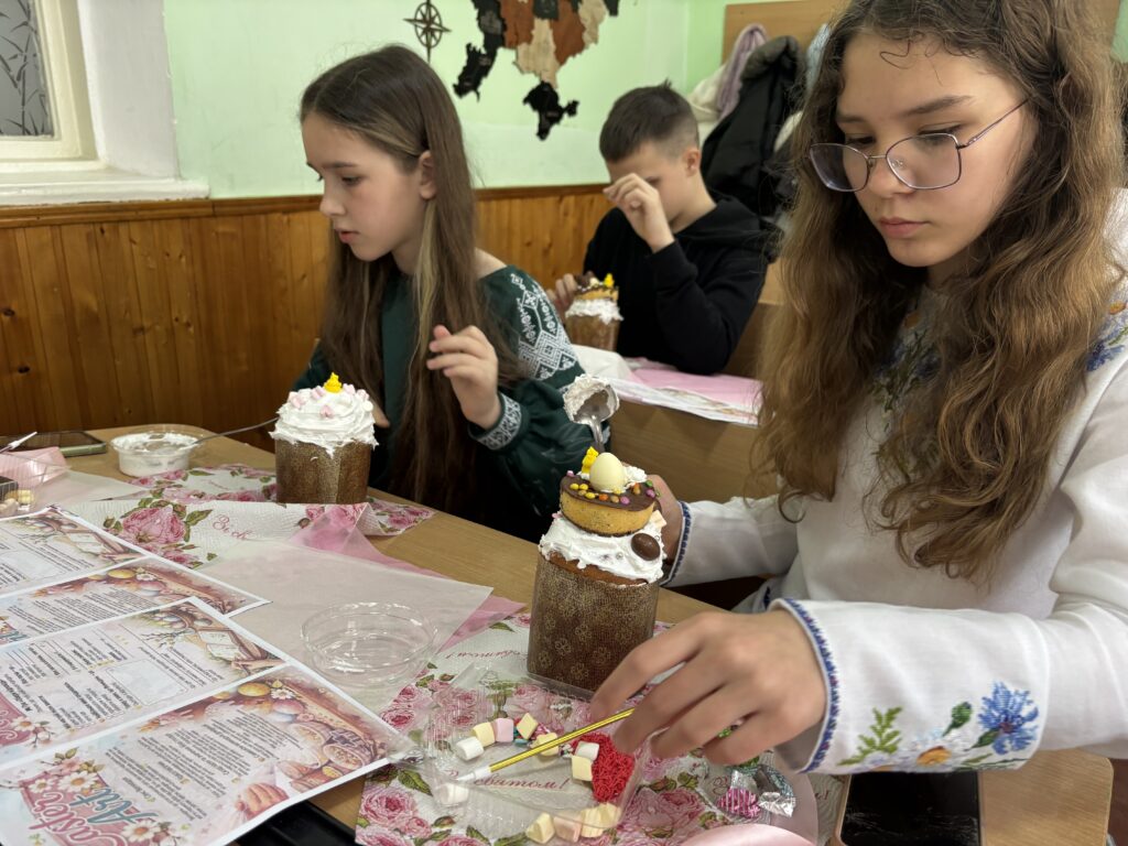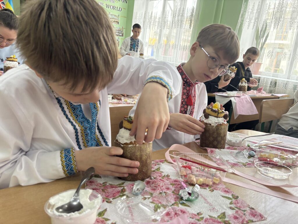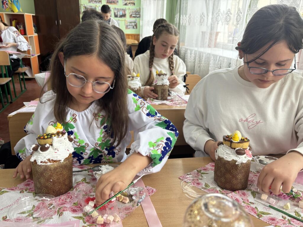 Для декорування використовували кольорові посипки, сучасні кондитерські прикраси та різноманітні поєднання елементів. Окрім творчої частини, учні також дізнавалися про традиції святкування Великодня та історію паски.